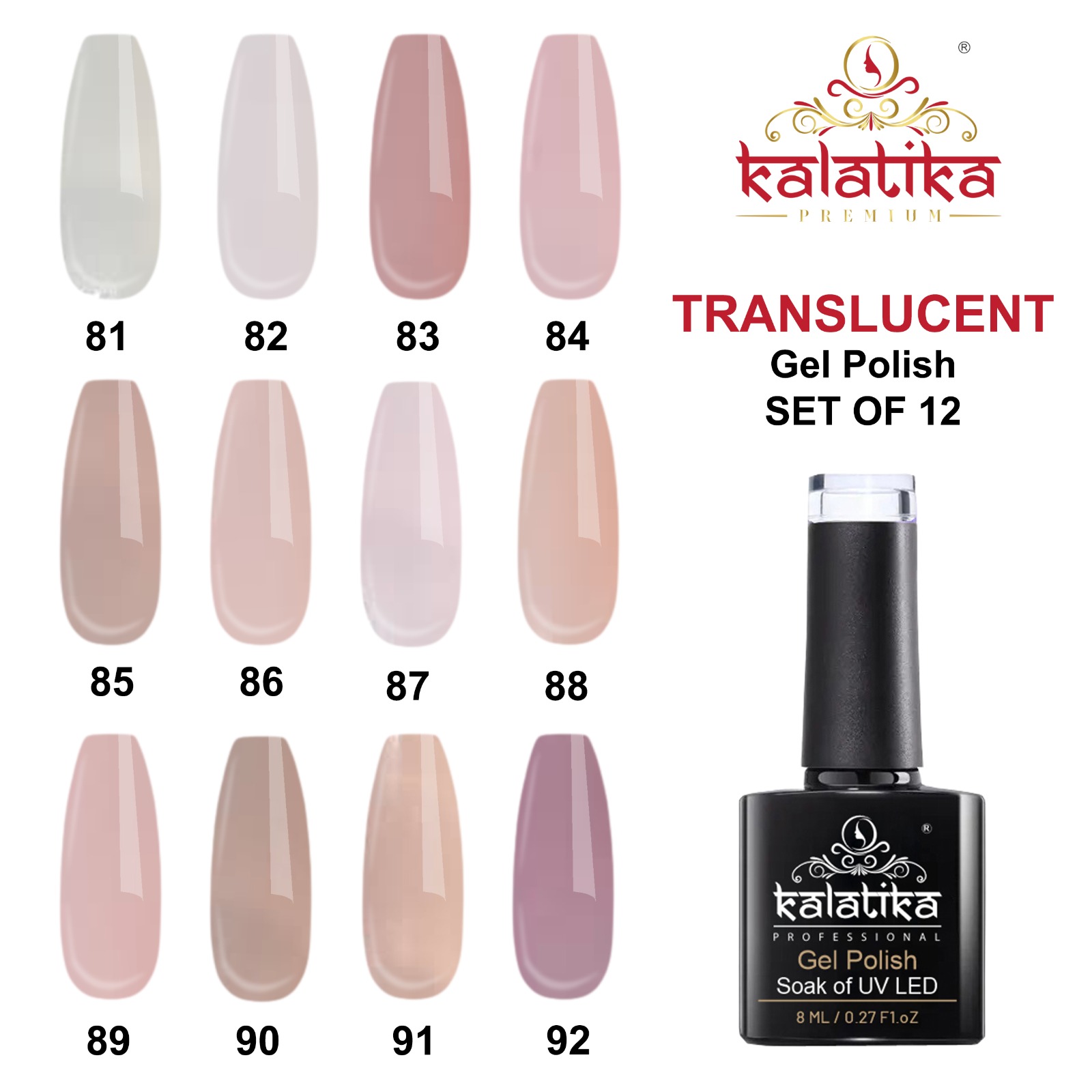 KALATIKA- BASE COLOR GEL POLISH – SET OF 12 PCS